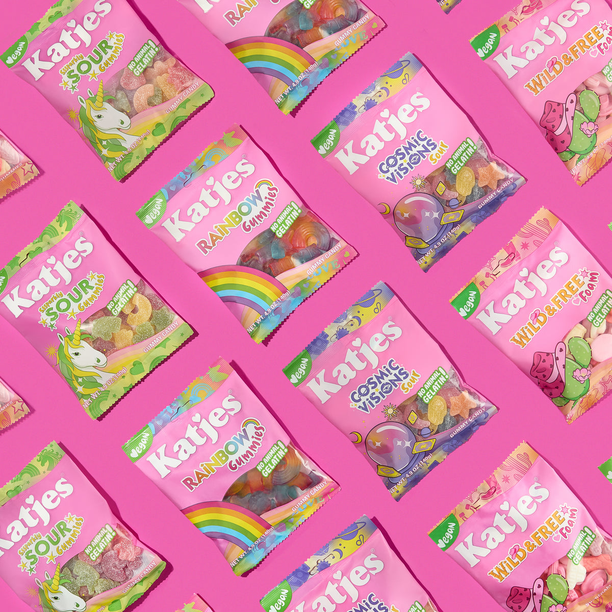 Most gummy candies get their chewy texture from gelatin that is derived from cows or pigs. Katjes gummy candy does not contain any animal gelatin but vegan ingredients instead, making them a super delicious choice if you're vegan*, vegetarian*, flexitarian* or on a restriction diet*.